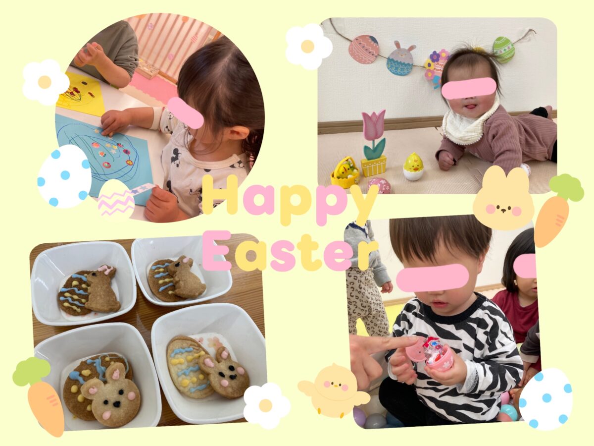 ハッピーイースター🐣 各クラス行事の雰囲気を楽しんでいたり、たまごを探したり作ってみたり、、、! 見つけたたまごの中にはお菓子が✨ おやつに出たたまごやうさぎのクッキーに大喜びの子ども達! 充実した一日になりました🐇🌈